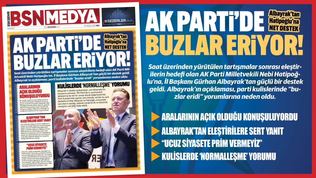 Bir süredir aralarının açık olduğu öne sürülen AK Parti Eskişehir " class="text-dark font-weight-bold" target="_blank"> Eskişehir İl Başkanı Gürhan Albayrak ile AK Parti Eskişehir " class="text-dark font-weight-bold" target="_blank"> Eskişehir Milletvekili Nebi Hatipoğlu hakkında dikkat çeken bir gelişme yaşandı. Kamuoyunda ve parti kulislerinde konuşulan iddialar, Albayrak’ın Hatipoğlu’na verdiği açık destekle yeni bir boyut kazandı.