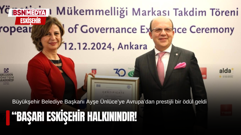 Eskişehir Büyükşehir Belediye Başkanı Ayşe Ünlüce, Avrupa Konseyi tarafından verilen Avrupa Yönetişim Mükemmelliği Markası (ELoGE) ödülüne üst üste ikinci kez layık görüldü. Başkan Ünlüce, ödülü Eskişehir halkına adadı ve şu ifadeleri kullandı: