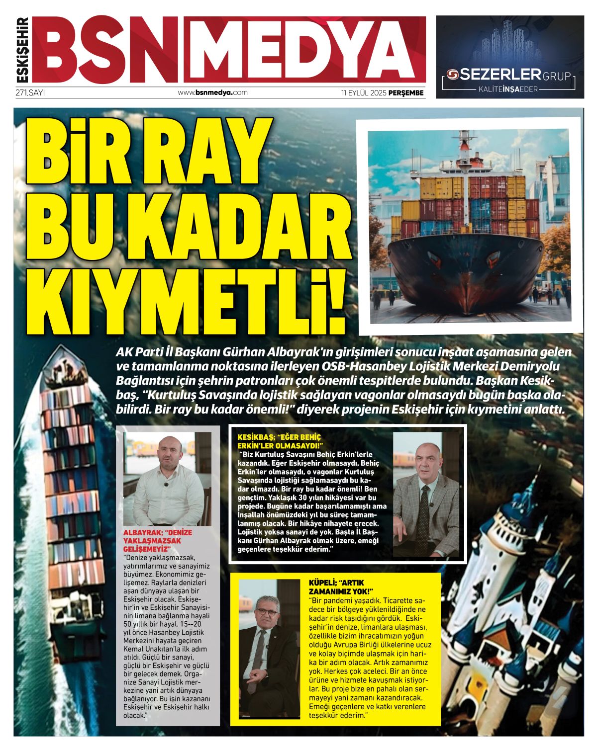 AK Parti İl Başkanı Gürhan Albayrak’ın girişimleri sonucu inşaat aşamasına gelen ve tamamlanma noktasına ilerleyen OSB-Hasanbey Lojistik Merkezi Demiryolu Bağlantısı için şehrin patronları çok önemli tespitlerde bulundu. Başkan Kesikbaş, “Kurtuluş Savaşında lojistik sağlayan vagonlar olmasaydı bugün başka olabilirdi. Bir ray bu kadar önemli!” diyerek projenin Eskişehir için kıymetini anlattı.