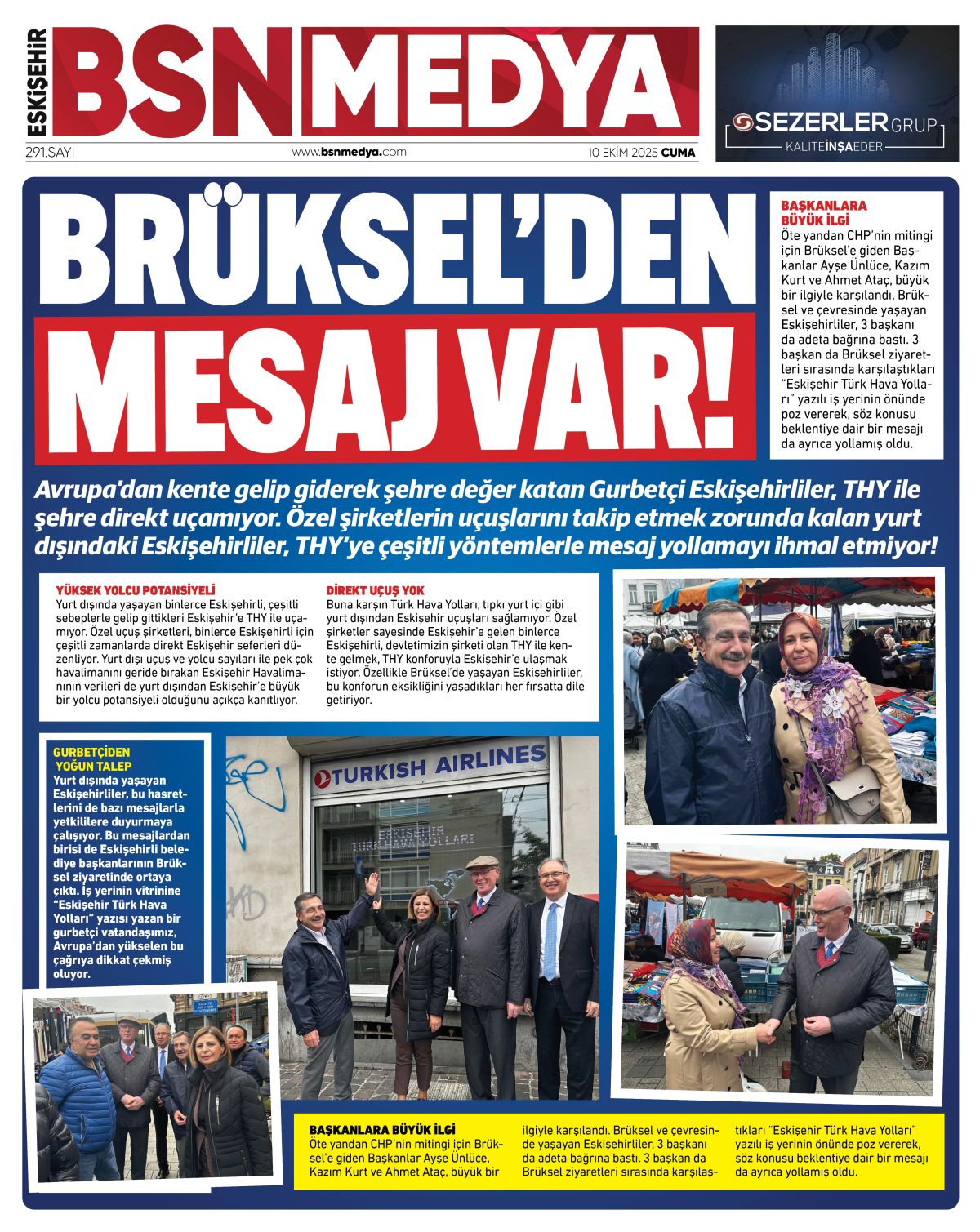 Öte yandan CHP’nin mitingi için Brüksel’e giden Başkanlar Ayşe Ünlüce, Kazım Kurt ve Ahmet Ataç, büyük bir ilgiyle karşılandı. Brüksel ve çevresinde yaşayan Eskişehirliler, 3 başkanı da adeta bağrına bastı. 3 başkan da Brüksel ziyaretleri sırasında karşılaştıkları “ Eskişehir Türk Hava Yolları” yazılı iş yerinin önünde poz vererek, söz konusu beklentiye dair bir mesajı da ayrıca yollamış oldu.