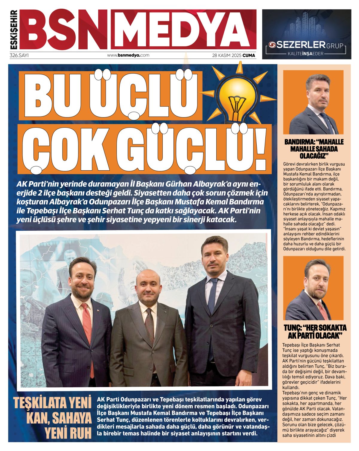 AK Parti’nin yerinde duramayan İl Başkanı Gürhan Albayrak’a aynı enerjide 2 ilçe başkanı desteği geldi. Siyasetten daha çok sorun çözmek için koşturan Albayrak’a Odunpazarı İlçe Başkanı Mustafa Kemal Bandırma ile Tepebaşı İlçe Başkanı Serhat Tunç da katkı sağlayacak. AK Parti’nin yeni üçlüsü şehre ve şehir siyasetine yepyeni bir sinerji katacak.
