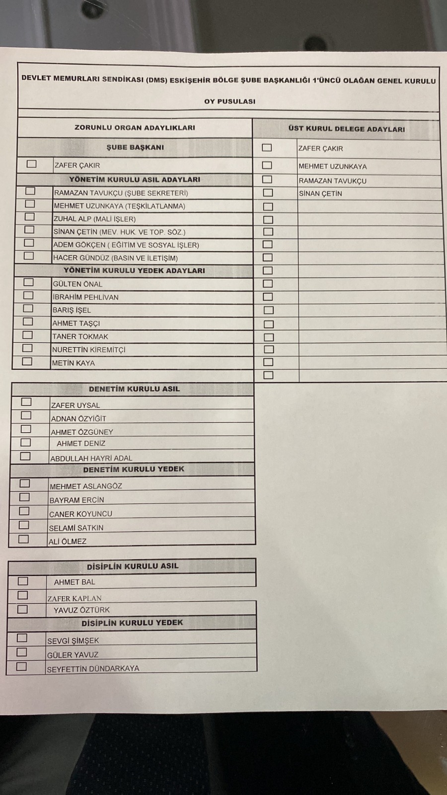 Kongre sonucunda, DMS Eskişehir Şubesi Yönetim Kurulu şu isimlerden oluştu: