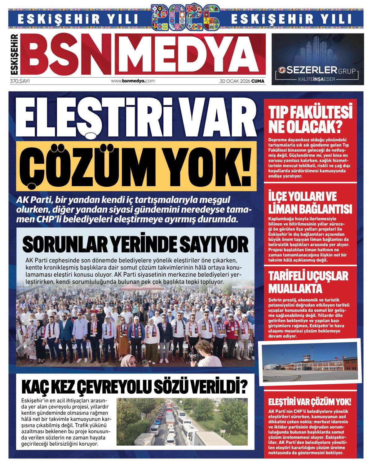 AK Parti’nin CHP’li belediyelere yönelik eleştirileri sürerken, kamuoyunun asıl dikkatini çeken nokta; merkezi idarenin ve iktidar partisinin doğrudan sorumluluğunda bulunan başlıklarda somut çözüm üretememesi oluyor. Eskişehirliler, AK Parti’den belediyelere yöneltilen eleştiri kararlılığını çözüm üretme noktasında da göstermesini bekliyor.