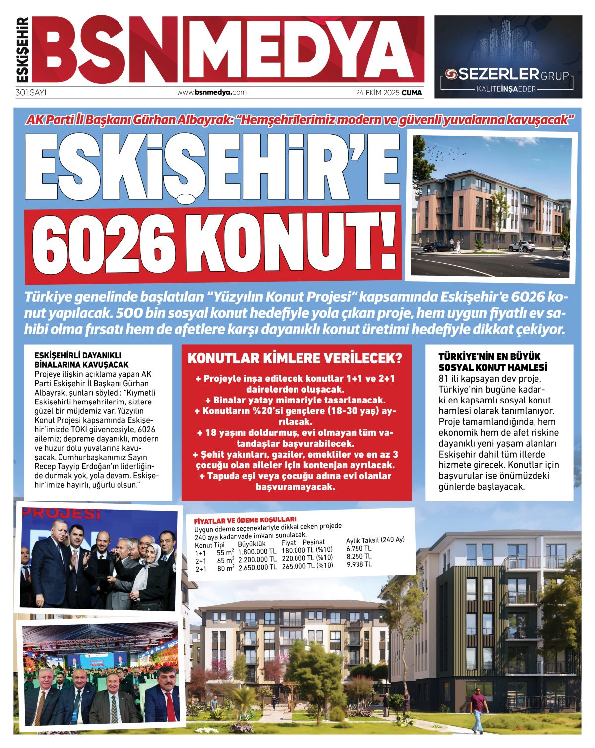 Türkiye genelinde başlatılan “Yüzyılın Konut Projesi” kapsamında Eskişehir’e 6026 konut yapılacak. 500 bin sosyal konut hedefiyle yola çıkan proje, hem uygun fiyatlı ev sahibi olma fırsatı hem de afetlere karşı dayanıklı konut üretimi hedefiyle dikkat çekiyor.