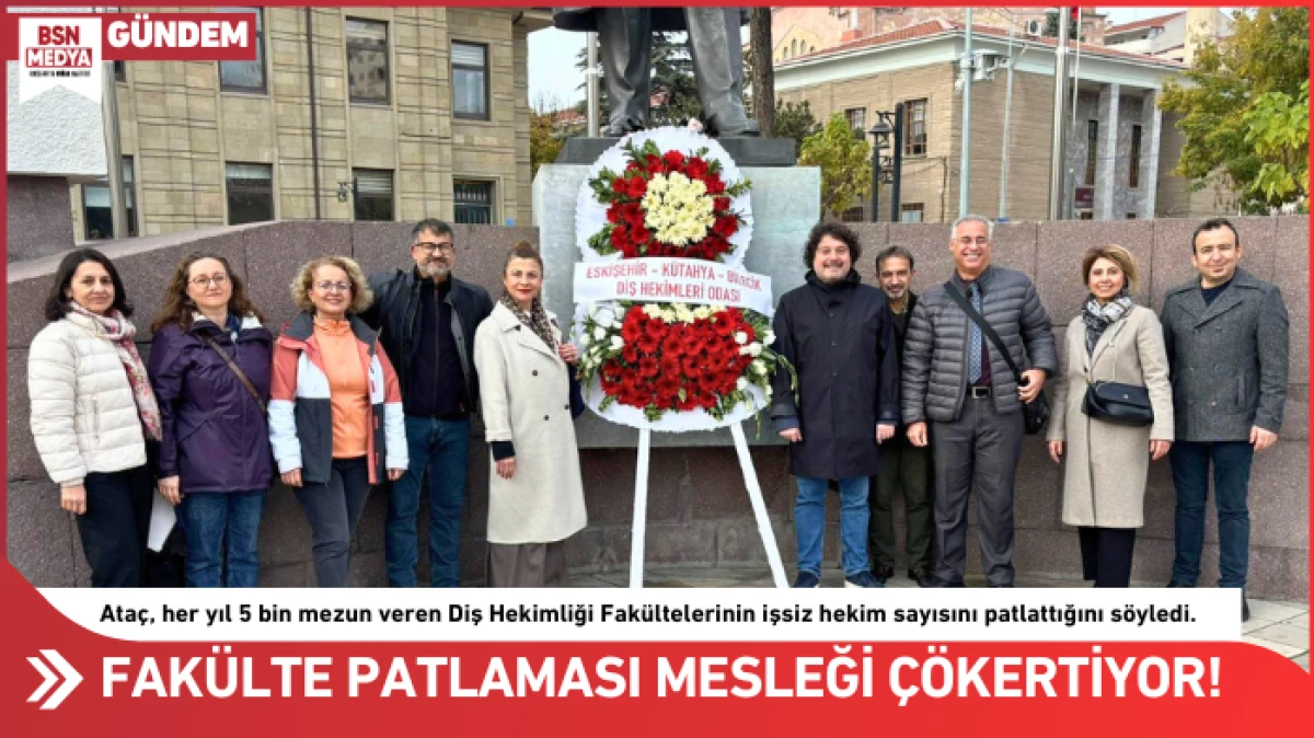 Eskişehir Diş Hekimleri Odası Başkanı Cenk Ataç, Bilimsel Diş Hekimliği’nin 117’nci yılı ve Toplum Ağız ve Diş Sağlığı Haftası kapsamında düzenlenen etkinlikte, mesleğin karşı karşıya olduğu yapısal sorunlara dikkat çeken önemli açıklamalarda bulundu. Ataç, Ulu Önder Mustafa Kemal Atatürk’ün huzurunda yapılan törende, hem toplum sağlığına hem de diş hekimliği mesleğinin geleceğine ilişkin çarpıcı uyarılar yaptı.