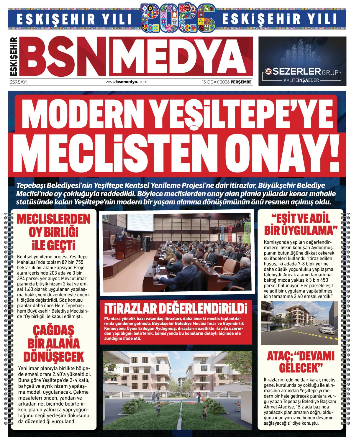 Tepebaşı Belediyesi’nin Yeşiltepe Kentsel Yenileme Projesi’ne dair itirazlar, Büyükşehir Belediye Meclisi’nde oy çokluğuyla reddedildi. Böylece meclislerden onay alan planla yıllardır kenar mahalle statüsünde kalan Yeşiltepe’nin modern bir yaşam alanına dönüşümünün önü resmen açılmış oldu.
