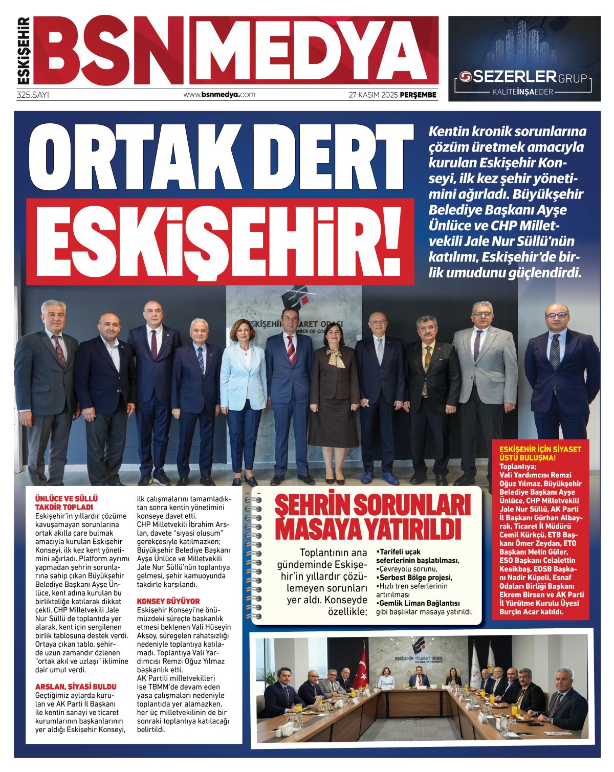 Kentin kronik sorunlarına çözüm üretmek amacıyla kurulan Eskişehir Konseyi, ilk kez şehir yönetimini ağırladı. Büyükşehir Belediye Başkanı Ayşe Ünlüce ve CHP Milletvekili Jale Nur Süllü’nün katılımı, Eskişehir’de birlik umudunu güçlendirdi.