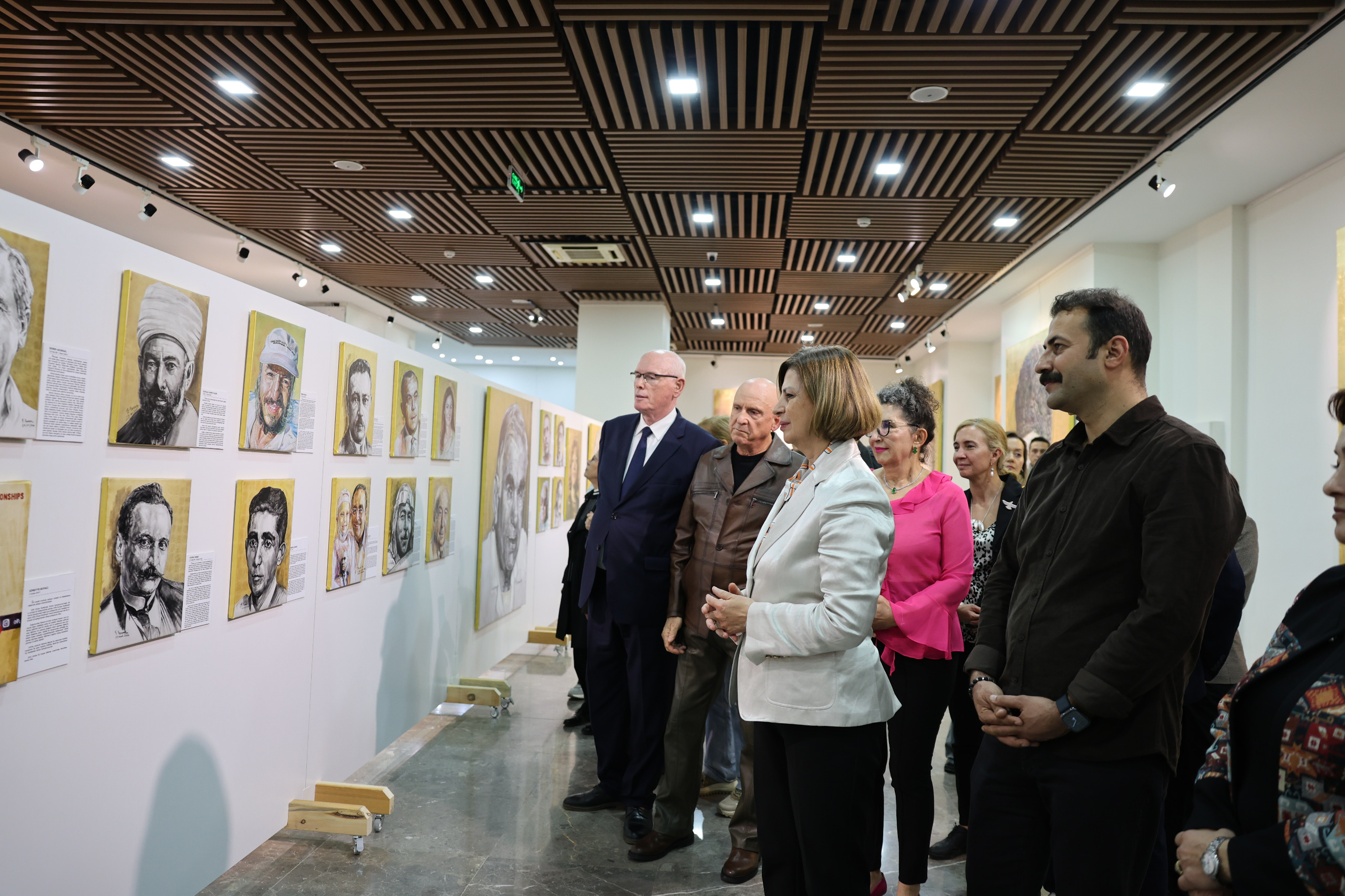 Sergide, Atatürk’ün yanı sıra birçok eser de yer alırken sanatçı Ergün Başar’ın çizdiği Ayşe Ünlüce ve Kazım Kurt’un portreleri de büyük beğeni topladı.