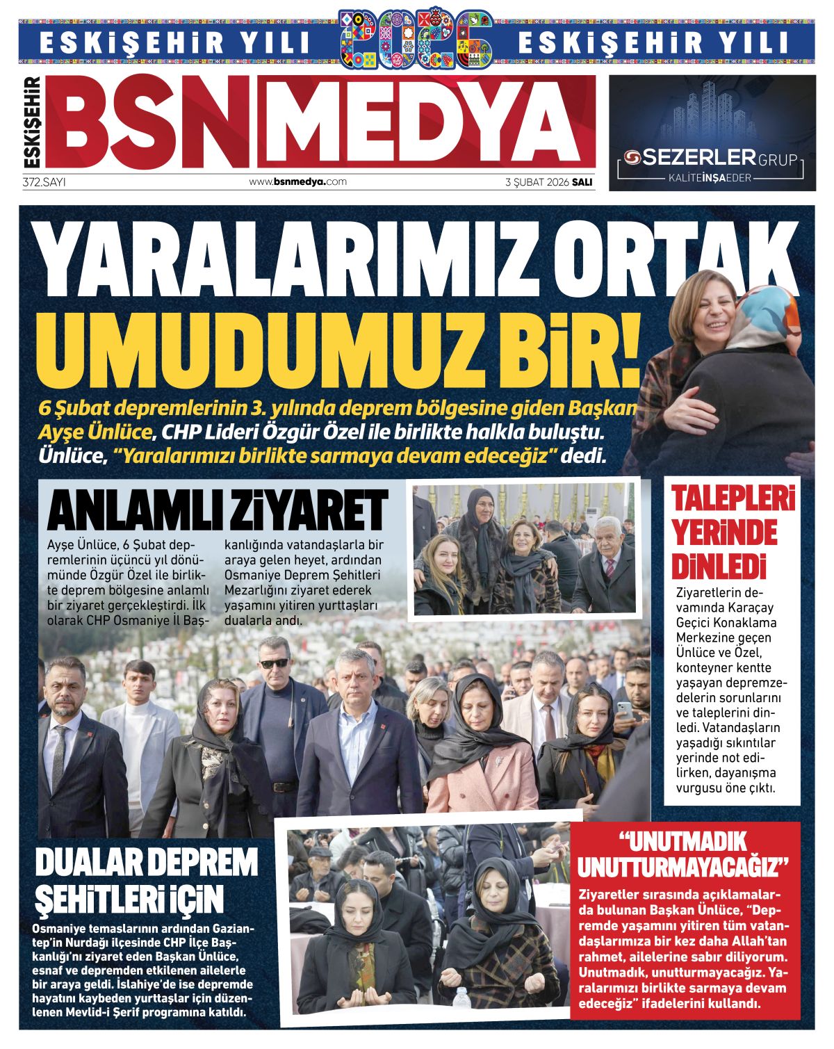 6 Şubat depremlerinin 3. yılında deprem bölgesine giden Başkan Ayşe Ünlüce, CHP Lideri Özgür Özel ile birlikte halkla buluştu. Ünlüce, “Yaralarımızı birlikte sarmaya devam edeceğiz” dedi.
